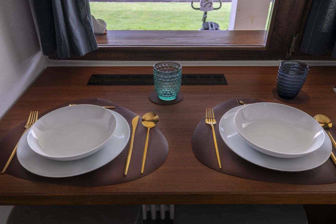 Grande Tavolo da Pranzo: Perfetto per condividere pasti con amici e famiglia, circondato dalla natura.