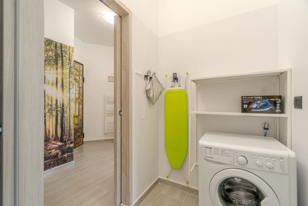 Antibagno: Con zona lavanderia, attrezzata con lavatrice, asse e ferro da stiro, e stendino.