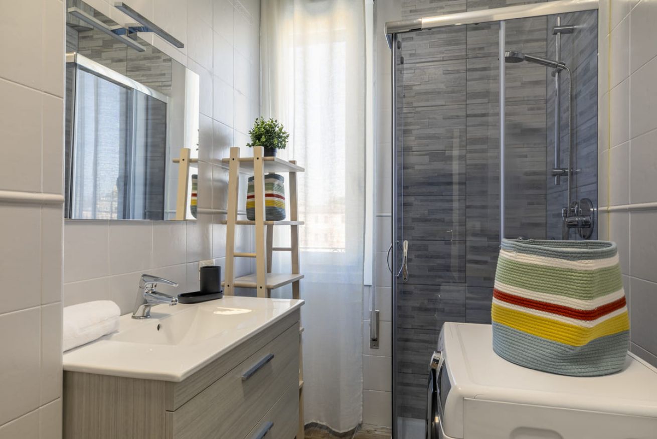 Bagni: Moderno bagno con doccia e con a disposizione una pratica lavatrice per le vostre necessità.
