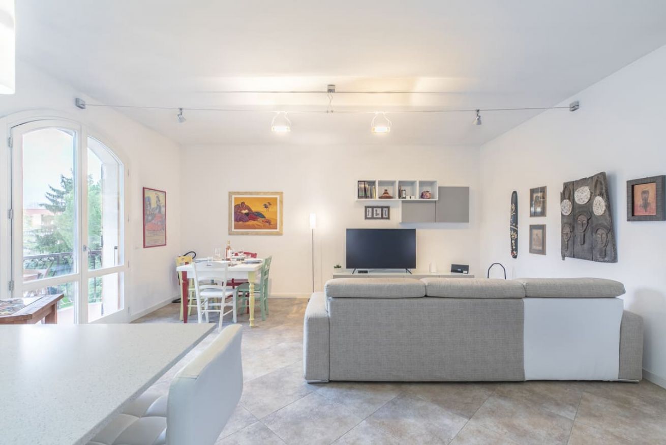 L'alloggio è stato pensato per ospitare comodamente famiglie o gruppi di amici, grazie a una distribuzione intelligente degli spazi.