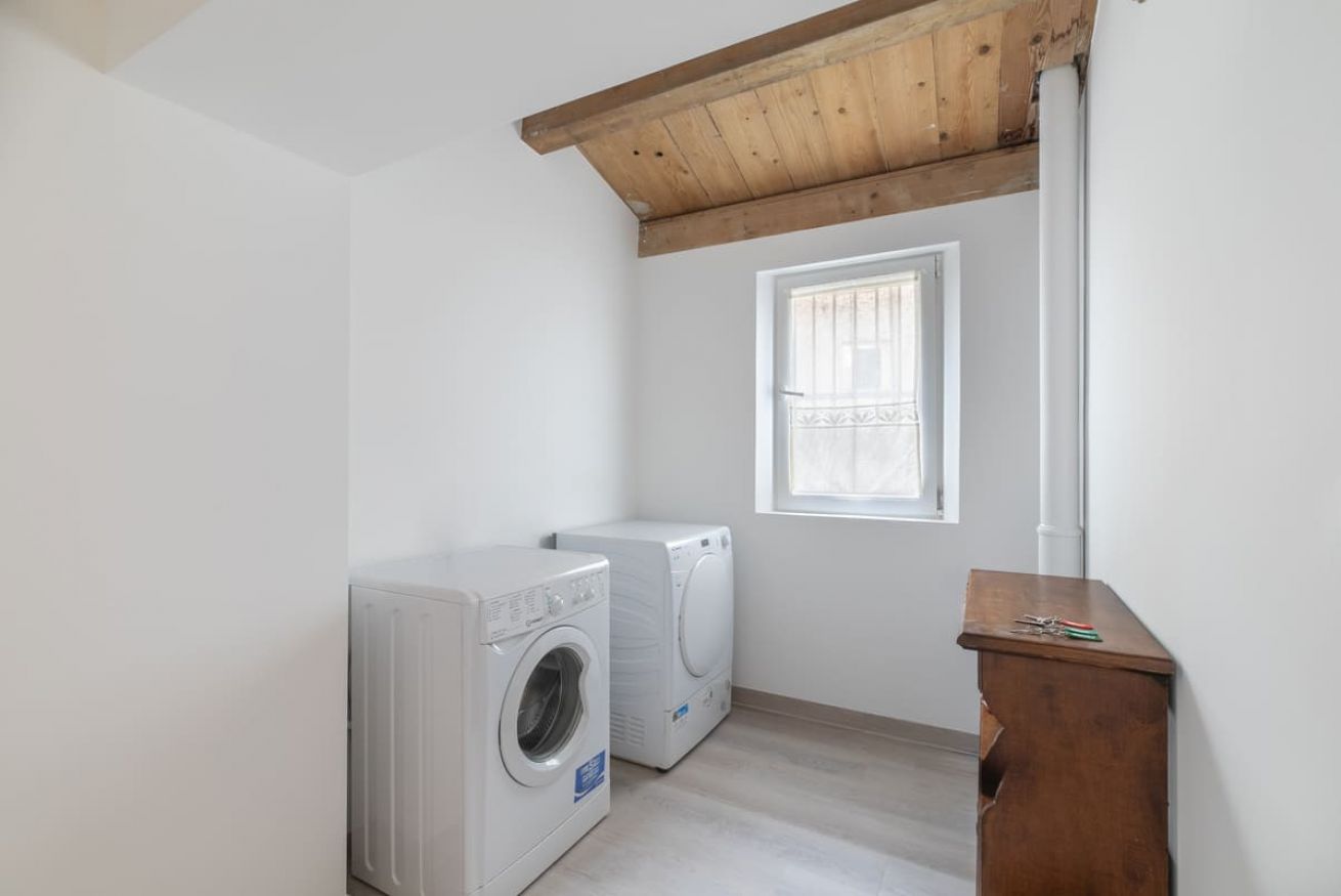 Area Lavanderia: Al piano terra della palazzina avrete accesso a uno spazio dedicato con lavatrice e asciugatrice, condiviso esclusivamente con gli altri due appartamenti della struttura.