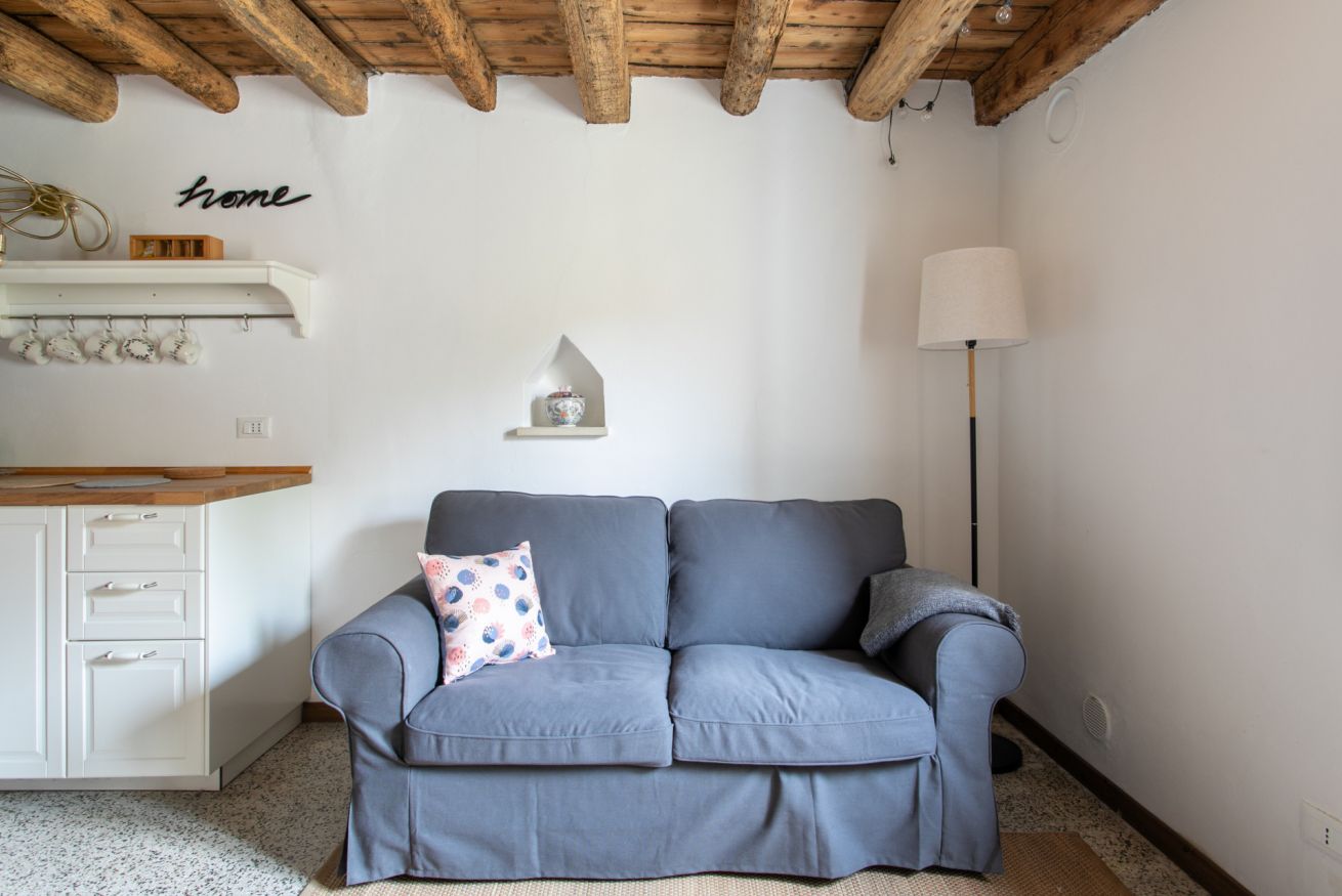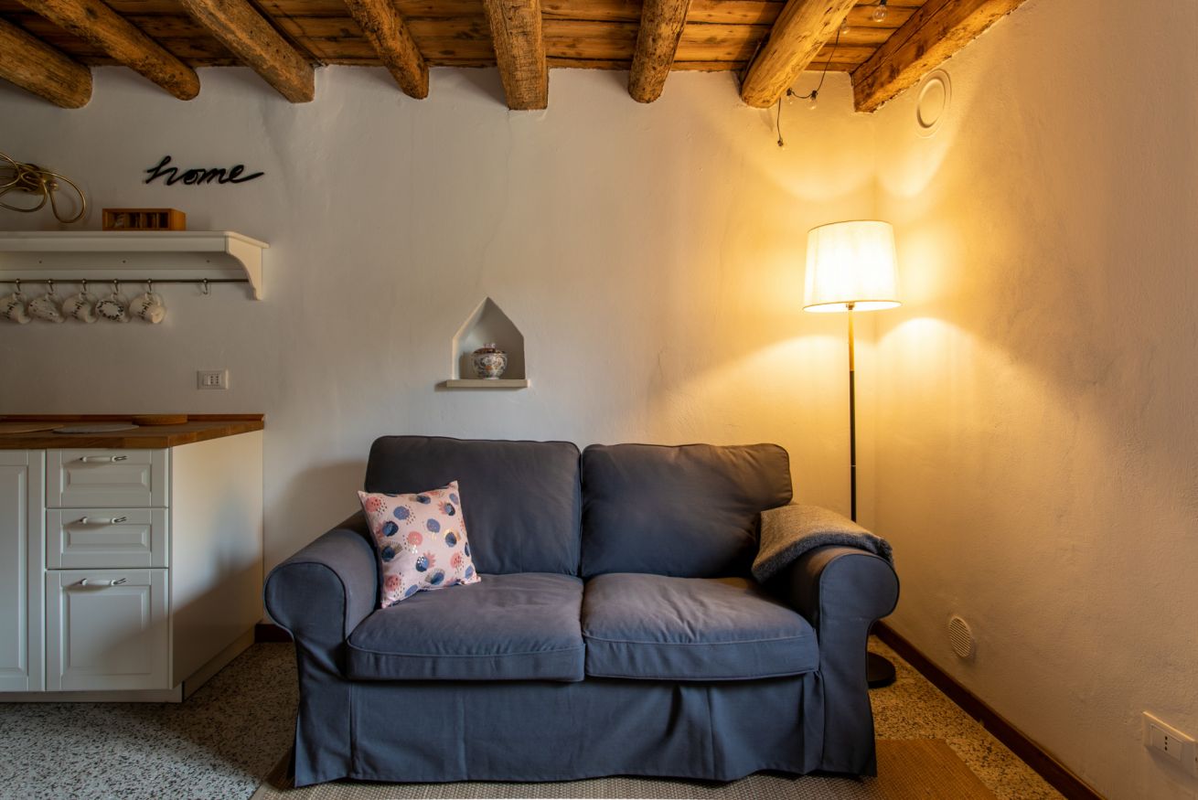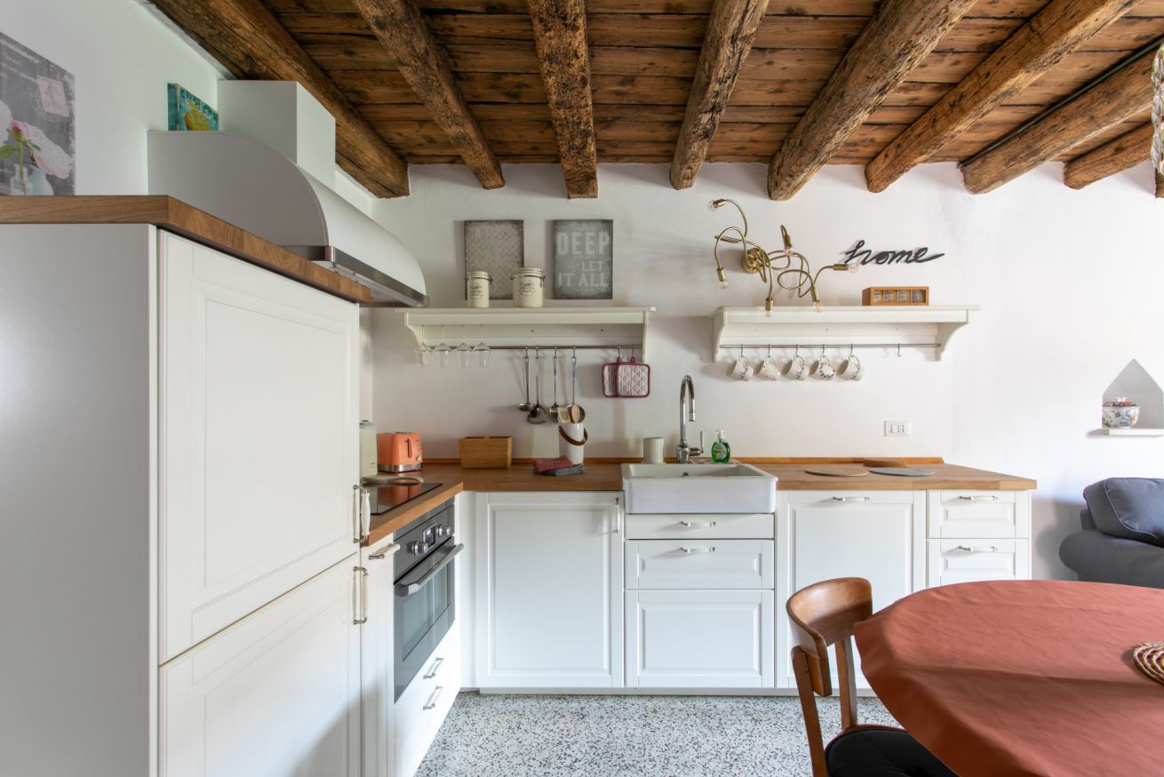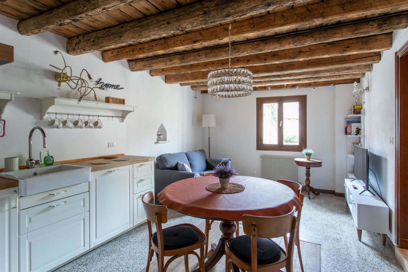 Un piacevole mix di antico e moderno caratterizza questo accogliente appartamento situato al piano terra.