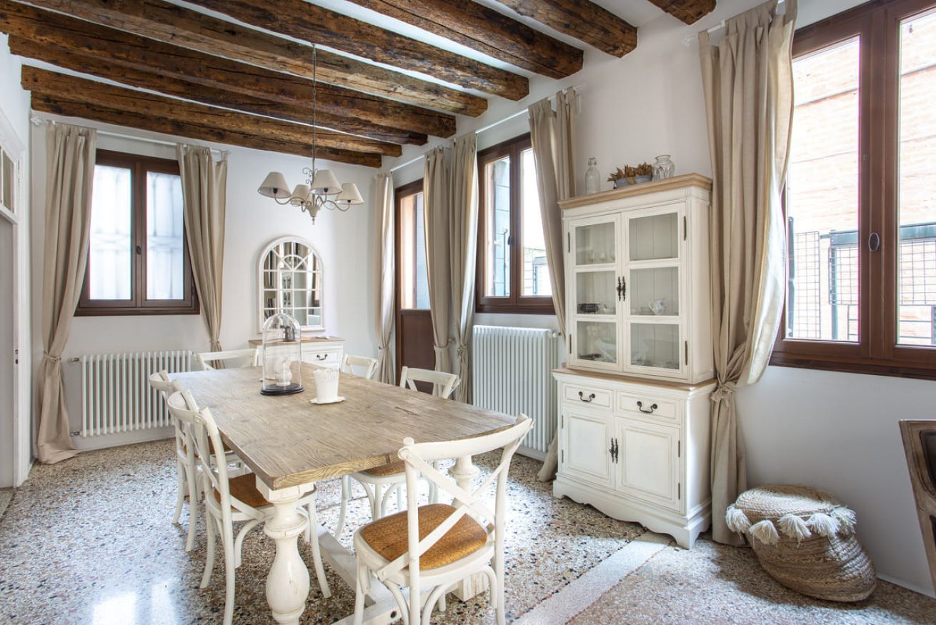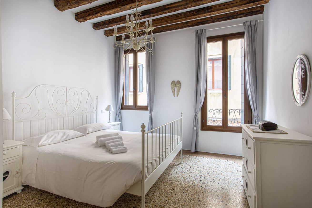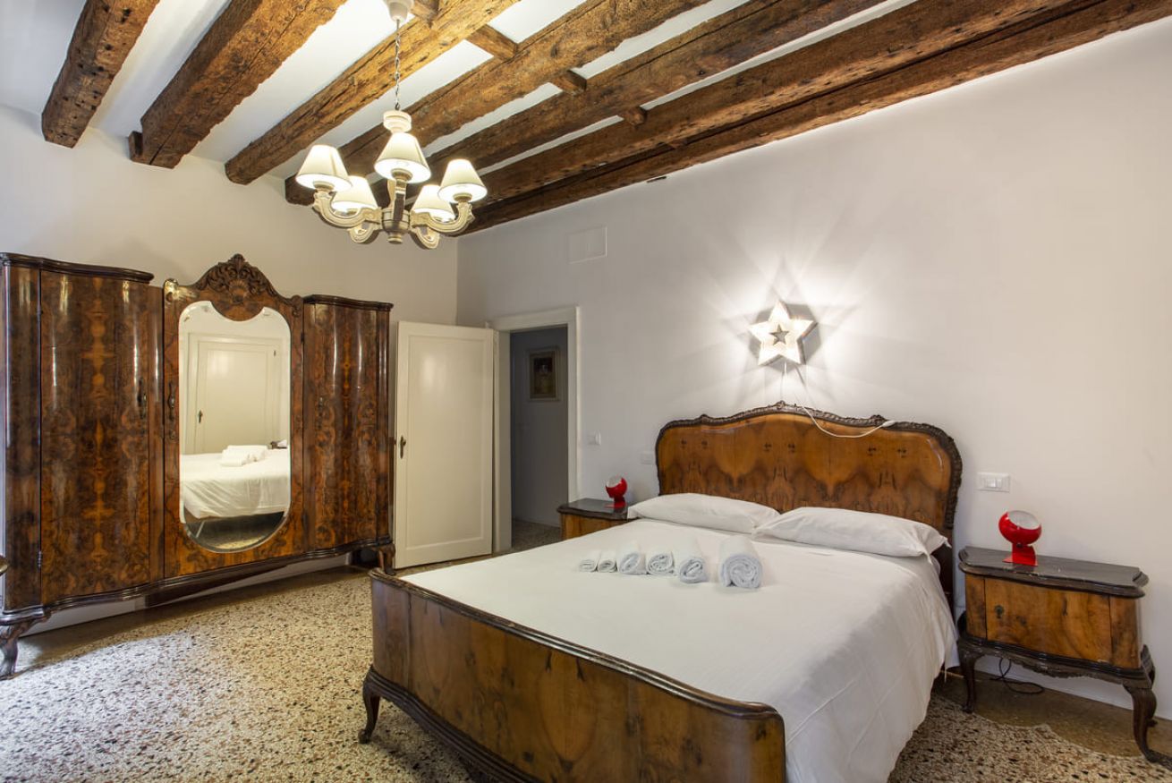 Camere da Letto: Due camere matrimoniali spaziose e arredate in stile veneziano, ideali per garantire un riposo rigenerante.