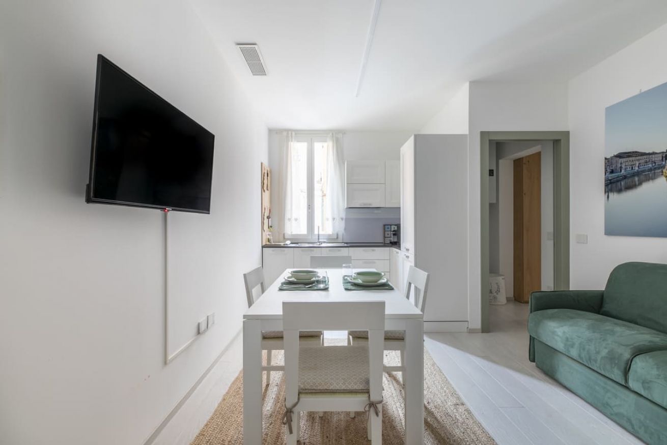 Zona Giorno: Un soggiorno luminoso e confortevole con TV e divano letto matrimoniale.